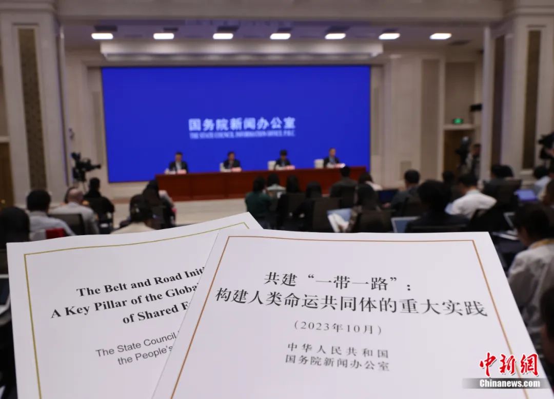 2023年10月10日,中國國務(wù)院新聞辦公室在北京舉行新聞發(fā)布會,發(fā)布《共建“一帶一路”:構(gòu)建人類命運共同體的重大實踐》白皮書。楊可佳 攝
