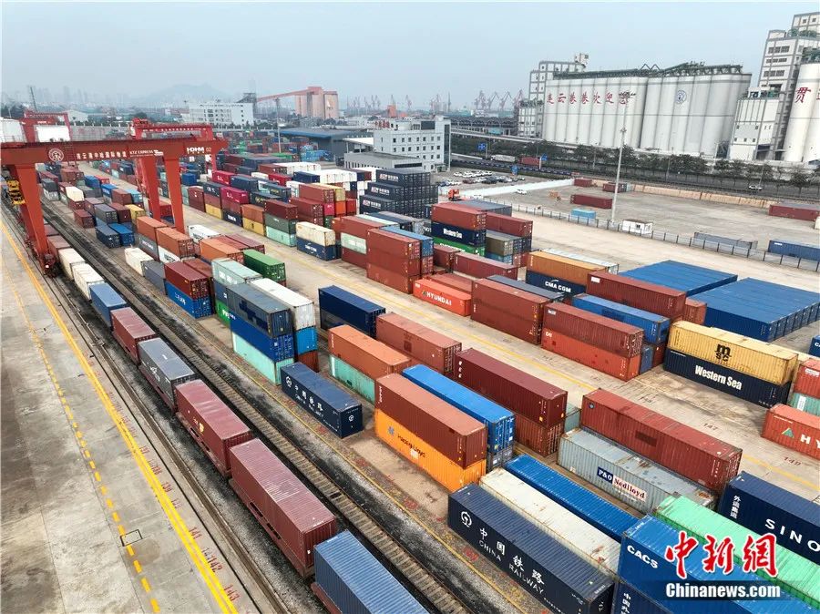 2023年10月9日,大型機械在中哈(連云港)物流合作基地往中歐班列裝載集裝箱。王春 攝