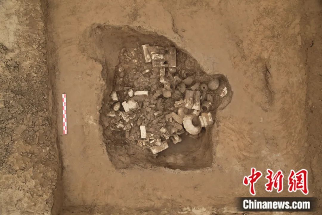 鄴城遺址東郭區(qū)佛教造像埋藏坑遺跡發(fā)掘現(xiàn)場。鄴城考古隊(duì)供圖