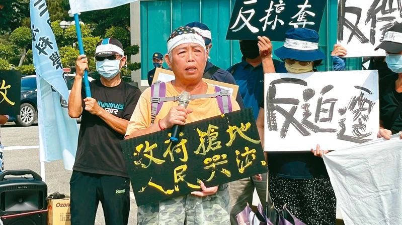 圖為遭征收區(qū)域的桃園居民不滿被征地,拉起布條抗?fàn)帯D自《聯(lián)合報(bào)》