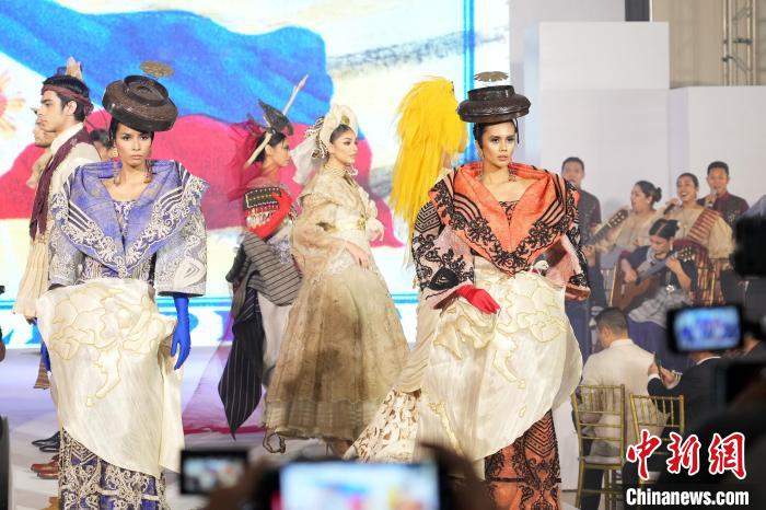 當(dāng)?shù)貢r(shí)間10月24日晚,“凈彩華裳·美美與共——傳統(tǒng)服飾與戲曲走進(jìn)中菲人文之驛活動(dòng)”在菲律賓首都馬尼拉舉行。中國(guó)和菲律賓傳統(tǒng)服飾接連亮相,呈現(xiàn)兩國(guó)傳統(tǒng)服飾文化,為觀眾帶來(lái)視覺盛宴。圖為模特展示菲律賓傳統(tǒng)服飾。記者 張興龍 攝