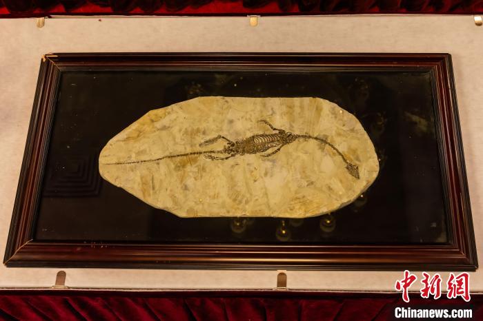 中國駐澳大利亞大使館舉行儀式,接收澳方向我國返還共4件流失文物藝術品與1件古生物化石。圖為晚侏羅世至早白堊世潛龍化石。 國家文物局供圖