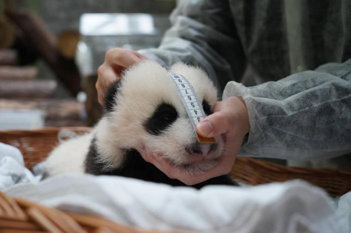 園方表示,熊貓寶寶的體重已經(jīng)達到3428克,與之前的體檢結(jié)果相比,身長增加了7厘米,尾巴的增長速度有所放緩,長度依然保持在6.8厘米。