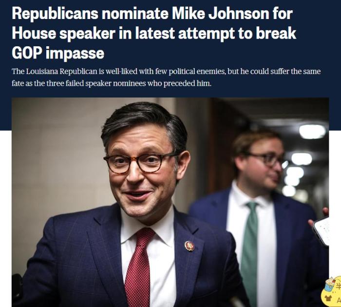 法新社還指出,約翰遜是共和黨在大約兩周內(nèi),所提名的第四位眾議院議長候選人,凸顯這個“分裂的”的政黨陷入了混亂。