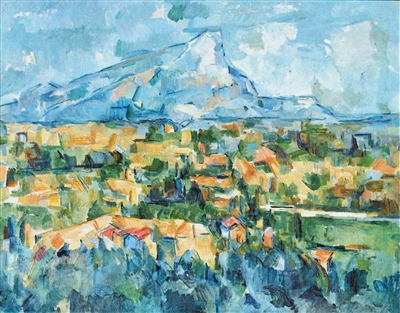 由此,塞尚、梵高、高更等藝術家的繪畫語言逐漸展現出不同于印象派的風格。塞尚在繪畫中拋棄了明暗和透視,尋求色彩與形狀的互相牽制,使畫面結構更加穩(wěn)定嚴謹,制造出物與物之間的空間張力。他的油畫作品《圣維克多山》(見圖,曲音供圖)用冷暖色搭配勾勒出許多幾何形狀的色塊,形如房屋、狀似樹木,以相互交疊的視覺呈現替代了透視效果,暗示出遠近和前后關系,令畫面中的山峰無論從哪個角度觀看都顯得雄偉壯麗。