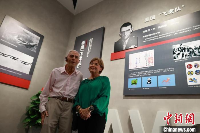 展館里,一張陳納德將軍的舊照,引起他外孫女嘉蘭惠的注意??吹脚f照時,她向眾人介紹外祖父并提出要在此合影留念。當年,陳納德離開美國援華時,嘉蘭惠的母親只有9歲。她說:“這張外祖父的照片讓我很感動,這意味著很多中國人記得他所做出的犧牲。”