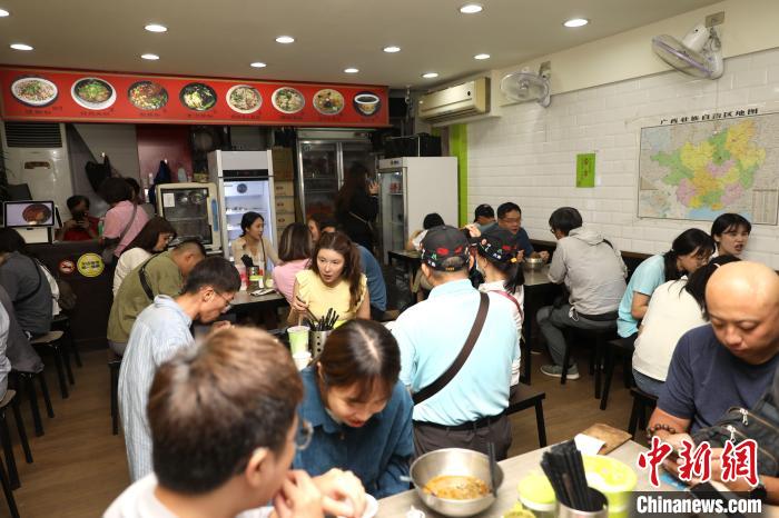 11月5日,臺(tái)北萬(wàn)華區(qū)的柳州螺螄粉店內(nèi),顧客正在用餐?!≈行律缬浾?陳小愿 攝