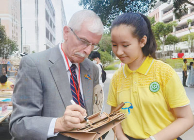飛虎隊(duì)老兵后人蘭迪·斯科特為廣西柳州市壺西實(shí)驗(yàn)中學(xué)學(xué)生留言。