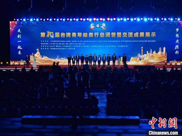 在第十屆臺灣青年嶺南行總閉營儀式上,臺灣社團和港澳社團青年代表登臺送上對嶺南行活動十周年的美好祝福。郭軍 攝