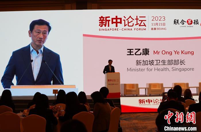 11月21日,第五屆“新中論壇”在北京舉行。圖為新加坡衛(wèi)生部部長王乙康作主旨演講?!≈行律缬浾?陳欣怡 攝