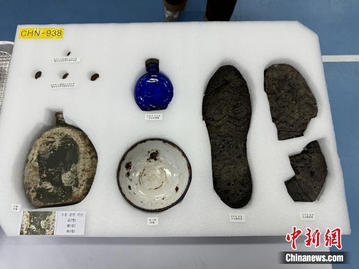 第十批在韓中國(guó)人民志愿軍烈士遺骸裝殮儀式在韓國(guó)仁川舉行。圖為部分遺物。中新網(wǎng)記者 劉旭 攝
