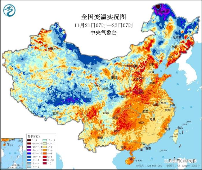 中新網(wǎng)11月22日電 據(jù)中央氣象臺(tái)網(wǎng)站消息,今晨,中東部大部地區(qū)仍有不同程度的回暖,但這也將是本輪寒潮過(guò)程來(lái)前最后的溫暖。目前冷空氣已經(jīng)開始影響黑龍江西北部,漠河今晨氣溫達(dá)到-27.3℃,比昨日同時(shí)刻降低20℃。中央氣象臺(tái)今晨繼續(xù)發(fā)布寒潮、暴雪、大風(fēng)三個(gè)預(yù)警。其中,未來(lái)24小時(shí),內(nèi)蒙古東部、黑龍江中東部將有大范圍強(qiáng)降雪,需要特別小心!