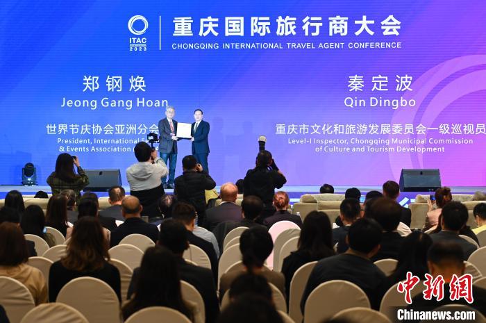 2023年6月,重慶入選世界節(jié)慶協(xié)會(huì)評(píng)選的“2023亞太三大旅游節(jié)慶城市”,進(jìn)一步擦亮了“不夜城”名片,提升對(duì)外交往活躍度、城市品牌知名度和城市經(jīng)濟(jì)外向度。世界節(jié)慶協(xié)會(huì)亞洲分會(huì)會(huì)長(zhǎng)鄭鋼煥在活動(dòng)中為重慶頒發(fā)“2023亞太旅游節(jié)慶城市”獎(jiǎng)項(xiàng)。