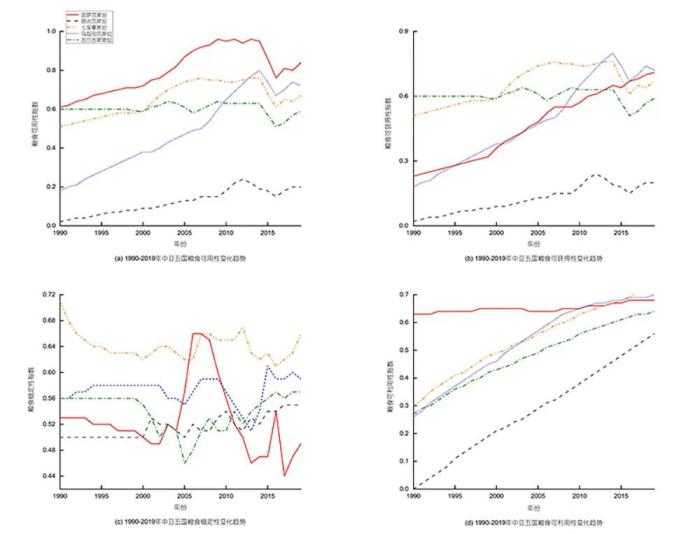 1990年-2019年中亞五國糧食安全二級指標(biāo)變化趨勢。譚亮成 供圖