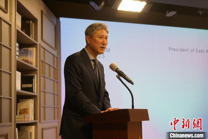 圖為韓國文化藝術(shù)委員會(huì)委員長鄭柄國致辭。記者 劉旭 攝