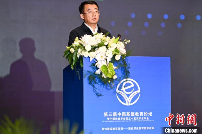 圖為中國(guó)教育學(xué)會(huì)副秘書(shū)長(zhǎng)趙應(yīng)生在論壇上交流發(fā)言。中新網(wǎng)記者何蓬磊攝