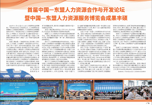 2023年11月3日至4日,由人力資源和社會保障部、廣西壯族自治區(qū)人民政府主辦,人力資源和社會保障部人力資源流動管理司、人力資源和社會保障部國際合作司、廣西壯族自治區(qū)人力資源和社會保障廳承辦,以“聚智匯力 同創(chuàng)共享”為主題的首屆中國—東盟人力資源合作與開發(fā)論壇暨中國—東盟人力資源服務博覽會(簡稱“人博會”),在廣西南寧國際會展中心舉辦。
