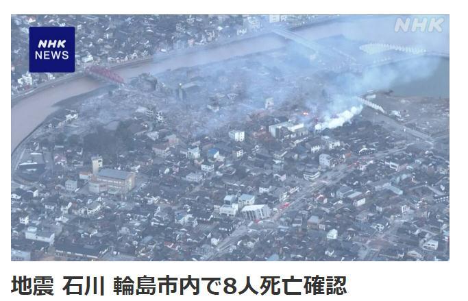 中新網(wǎng)1月2日電 據(jù)日本放送協(xié)會(huì)(NHK)最新消息,截至目前,日本石川縣輪島市已有8人因地震死亡。