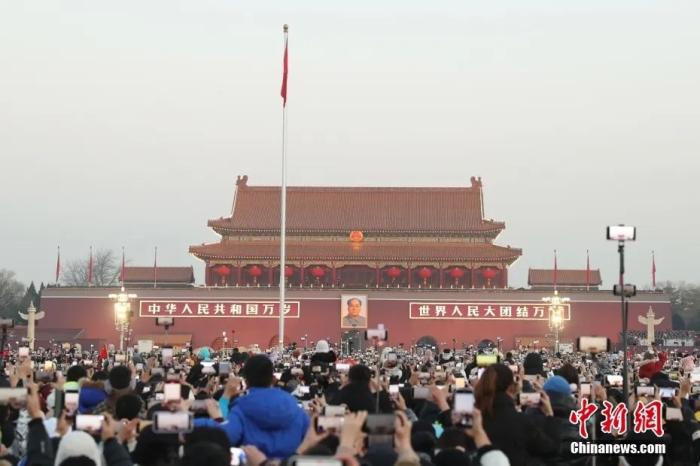 2024年1月1日晨,北京天安門(mén)廣場(chǎng)舉行隆重的升國(guó)旗儀式。中新社記者 蔣啟明 攝