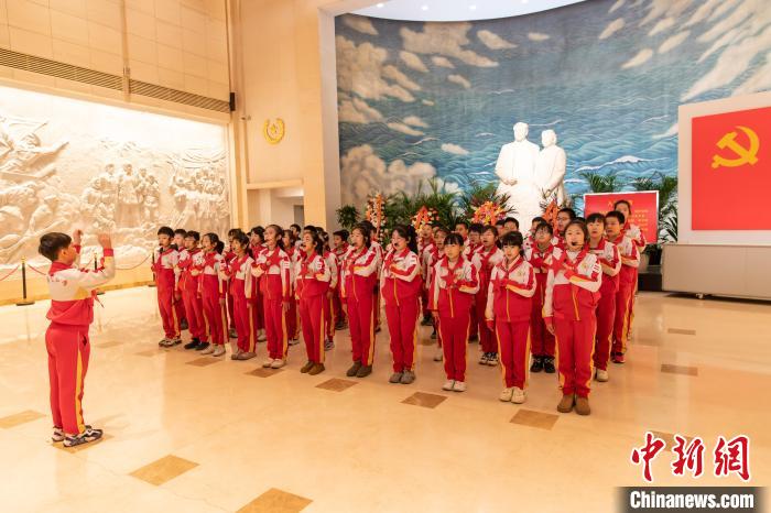 隨后,天津市川府里小學(xué)學(xué)生為大家?guī)砭世收b《為中華之崛起而讀書》,再現(xiàn)了周恩來青年時(shí)代在奉天(今沈陽(yáng))東關(guān)模范學(xué)校上學(xué)時(shí)立下的宏偉志向。伴隨著《紅星閃閃》的嘹亮歌曲,新時(shí)代少年立下了“故今日之責(zé)任,不在他人,而全在我少年。少年智則國(guó)智,少年富則國(guó)富,少年強(qiáng)則國(guó)強(qiáng).......”的鏗鏘誓言。