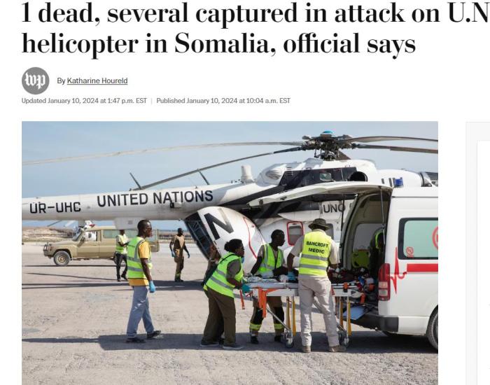 外媒:聯(lián)合國(guó)一直升機(jī)在索馬里遭劫持 已有1人死亡2人失蹤