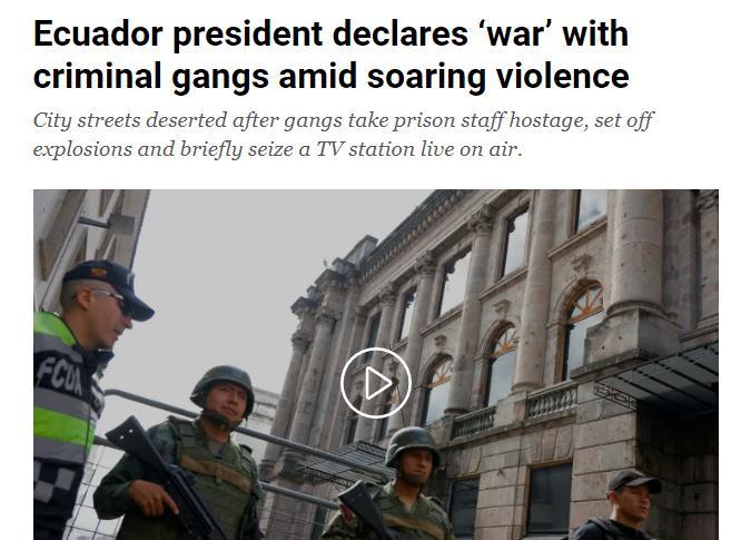 1月8日,厄瓜多爾總統(tǒng)諾沃亞宣布,全國將進入為期60天的緊急狀態(tài),并出動警察和武裝部隊控制擾亂公共秩序的行為,包括當地時間晚上11時至凌晨5時實行宵禁。諾沃亞9日又宣布,該國進入“國內武裝沖突”狀態(tài)。