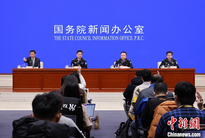 1月11日,中國國務(wù)院新聞辦公室在北京舉行新聞發(fā)布會,國家移民管理局副局長劉海濤、外國人管理司司長毛旭、邊防檢查管理司司長池景陽介紹便利外籍人員來華5項(xiàng)措施有關(guān)情況,并答記者問。 中新社記者 楊可佳 攝