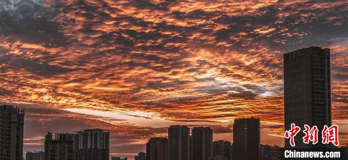 中新網(wǎng)昆明1月11日電 (黃興鴻)11日黃昏時(shí)分,云南昆明、德宏、臨滄等地的天空出現(xiàn)密集的“魚(yú)鱗云”。在夕陽(yáng)的映照下,似霞似錦,如夢(mèng)如幻。眾多網(wǎng)友在手機(jī)上的社交平臺(tái)上狂熱“曬”云,為彩云之南“上分”。
