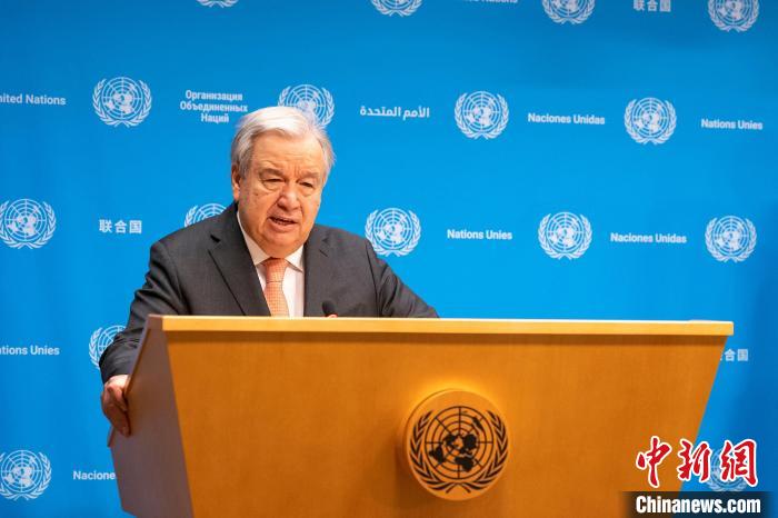 當(dāng)?shù)貢r(shí)間1月15日,聯(lián)合國秘書長古特雷斯在紐約聯(lián)合國總部向媒體發(fā)表講話,再次呼吁立即在加沙地帶實(shí)現(xiàn)人道主義?;稹!≈行律缬浾?王帆 攝