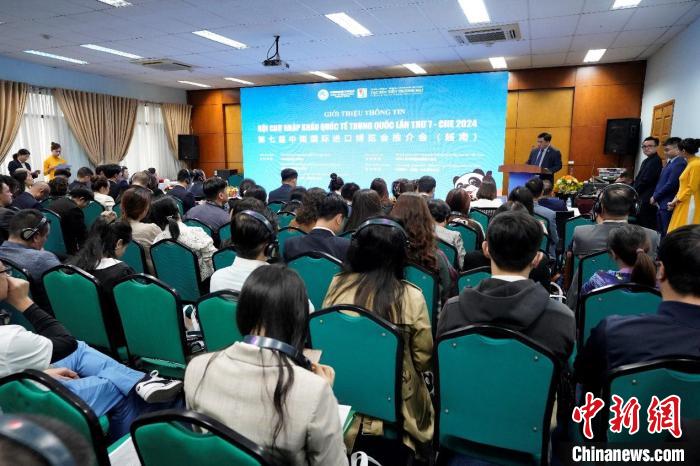 中新網(wǎng)北京1月17日電 當?shù)貢r間16日下午,第七屆中國國際進口博覽會推介會在越南河內舉辦,超100家越南企業(yè)和機構參會。