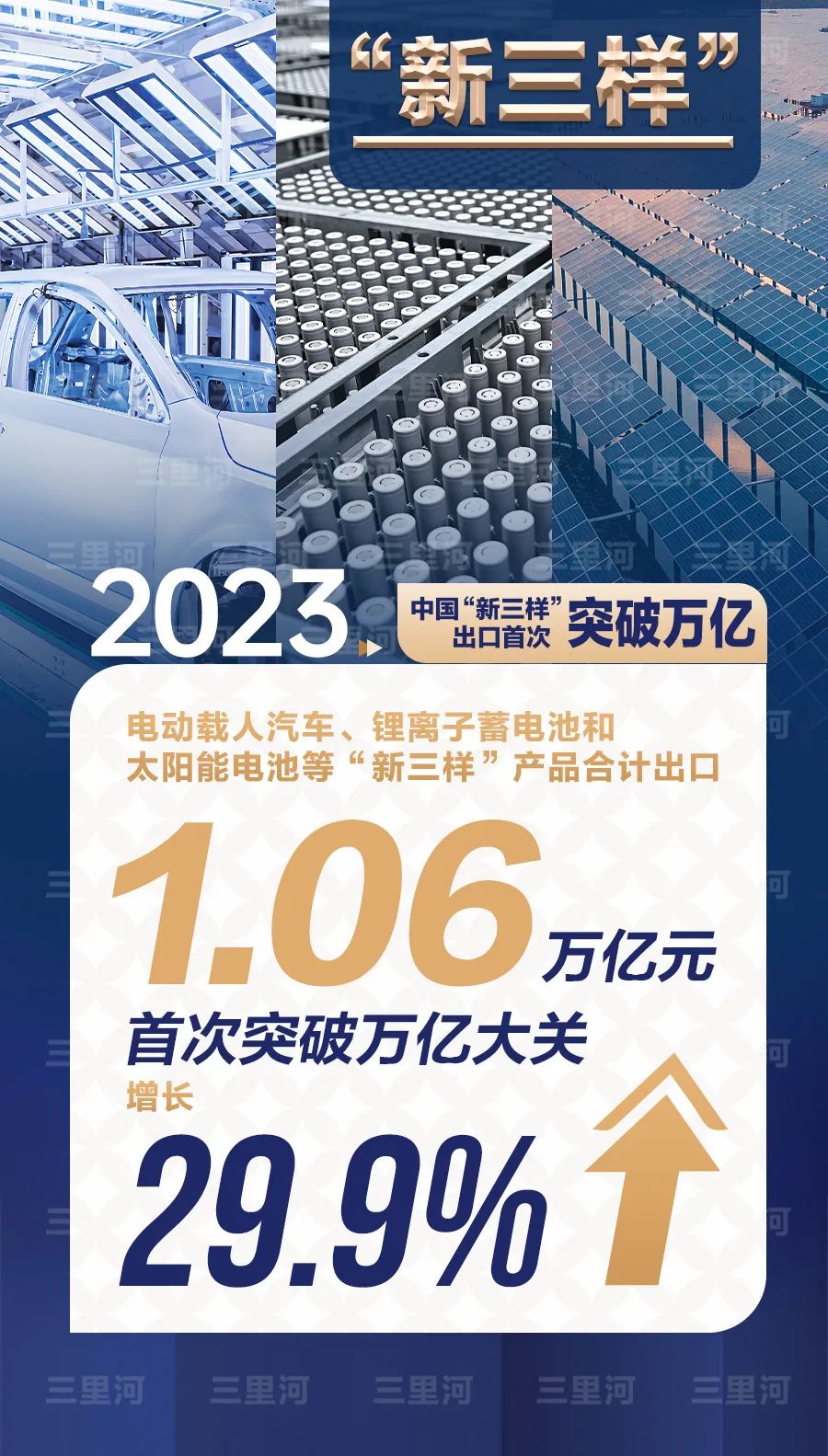 活力來自新動能——制造業(yè)技改投資增長3.8%,高技術產業(yè)投資增長10.3%,快于全部固定資產投資的增速。2023年電動載人汽車、鋰電池和太陽能電池等“新三樣”產品合計出口1.06萬億元,首次突破萬億大關。中國經濟在加快培育新質生產力中不斷發(fā)展壯大。