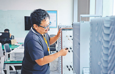 在泰國(guó)最大移動(dòng)運(yùn)營(yíng)商AIS和中興(泰國(guó))通信公司聯(lián)合創(chuàng)建的AIS—ZTE聯(lián)合創(chuàng)新中心內(nèi),泰國(guó)工作人員在對(duì)通信設(shè)備進(jìn)行檢修調(diào)試。