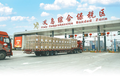 集卡車駛?cè)肓x烏綜合保稅區(qū)。