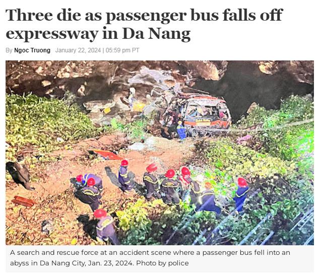 中新網(wǎng)1月23日電 據(jù)越南媒體"VNexpress"報道,當(dāng)?shù)貢r間1月23日凌晨1時30分左右,一輛大客車從越南峴港的高速公路上沖出墜崖,已致3人遇難、3人重傷。