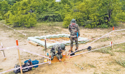 去年,為期3個(gè)月的中國(guó)援助柬埔寨、老撾人道主義掃雷培訓(xùn)班在陸軍工程大學(xué)(南京)舉辦,40名來(lái)自柬埔寨、老撾的學(xué)員接受了培訓(xùn)。從理論知識(shí)到專項(xiàng)技能訓(xùn)練,從實(shí)爆作業(yè)到雷場(chǎng)仿真訓(xùn)練,再加上學(xué)習(xí)運(yùn)用雷場(chǎng)無(wú)人機(jī)勘察、機(jī)器人排爆、激光排雷銷毀等新技術(shù)手段,學(xué)員們受益頗深?!霸谌A培訓(xùn)的3個(gè)月里,中方教員掃雷技術(shù)扎實(shí)專業(yè)、講授耐心細(xì)致,給我留下了深刻印象?!眮?lái)自柬埔寨的參訓(xùn)學(xué)員艾恩說(shuō)。據(jù)了解,截至目前,陸軍工程大學(xué)已為柬埔寨、老撾兩國(guó)開(kāi)辦8期掃雷培訓(xùn)班,培養(yǎng)300余名專業(yè)技術(shù)人才。