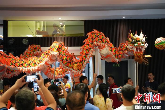 圖為聯(lián)歡會現(xiàn)場的舞龍表演。張興龍 攝