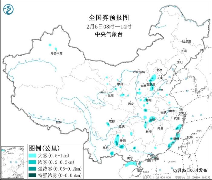 中央氣象臺2月5日06時繼續(xù)發(fā)布大霧黃色預警:預計,5日早晨至上午,雷州半島沿岸海域、粵西沿岸海域、北部灣偏北海域、福建沿岸的部分海域將有大霧,能見度不足1公里。此外,河北西部、山西西南部、河南南部、湖北中東部、浙江東南部、福建東部、貴州西部等地有大霧天氣,局地有能見度不足200米的強濃霧。