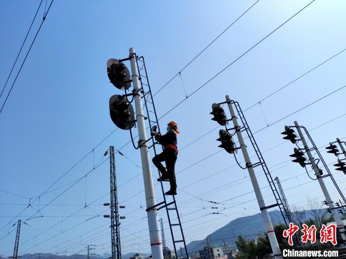 圖為安康東電務(wù)車間職工正在進行高柱信號機檢修。王建滆攝