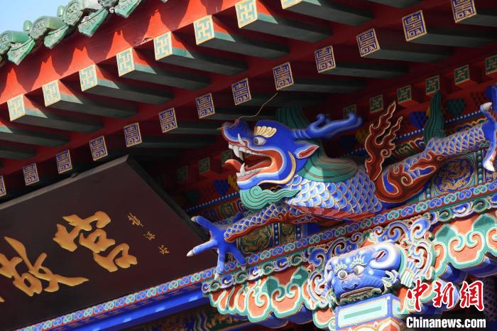 “沈陽(yáng)故宮各類古建筑上的龍,從材質(zhì)上來(lái)說(shuō),有琉璃、木雕、石雕等,其中大政殿木雕的‘金龍盤柱’比較有代表性。”沈陽(yáng)故宮博物院研究室副主任張國(guó)斌向記者介紹說(shuō),作為沈陽(yáng)故宮中營(yíng)造時(shí)間最早的建筑之一,大政殿是舉行新君即位、頒詔、元旦慶典、迎接大軍凱旋、舉行國(guó)宴等重大活動(dòng)的地方,其造型和裝飾吸收借鑒了漢、滿、蒙、藏等多民族文化元素。