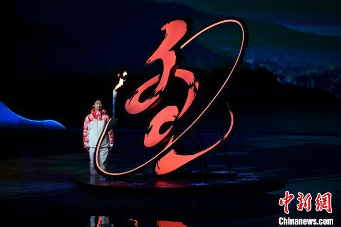 2月17日,第十四屆全國(guó)冬季運(yùn)動(dòng)會(huì)開(kāi)幕式在內(nèi)蒙古呼倫貝爾市海拉爾區(qū)內(nèi)蒙古冰上運(yùn)動(dòng)訓(xùn)練中心舉行。圖為武大靖點(diǎn)燃火炬。 中新社記者 崔楠 攝