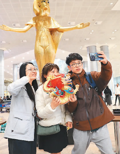 埃及是中國游客春節(jié)假期出境游的主要目的地之一。2月10日,開羅國際機(jī)場舉辦“歡迎中國游客來埃及過大年”儀式,迎接當(dāng)天抵達(dá)的300余名中國游客?!敖鹱炙?、獅身人面像、埃及博物館、卡爾納克神廟……今年來埃及的中國游客尤其多,幾乎每個(gè)景點(diǎn)都能看到中國游客的身影?!卑<皩?dǎo)游哈迪布告訴記者,春節(jié)是他最忙碌的時(shí)期。