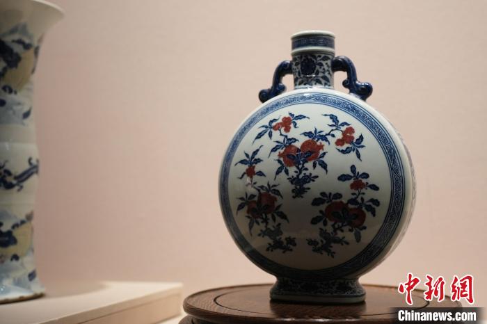 2月27日,正在“御瓷歸來”展覽上展出的“青花釉里紅折枝石榴紋抱月瓶”。 劉思偉 攝
