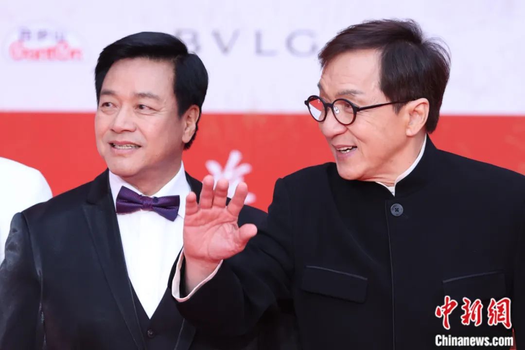 2023年4月,成龍(右)、唐季禮亮相第十三屆北京國(guó)際電影節(jié)開(kāi)幕紅毯。蔣啟明 攝