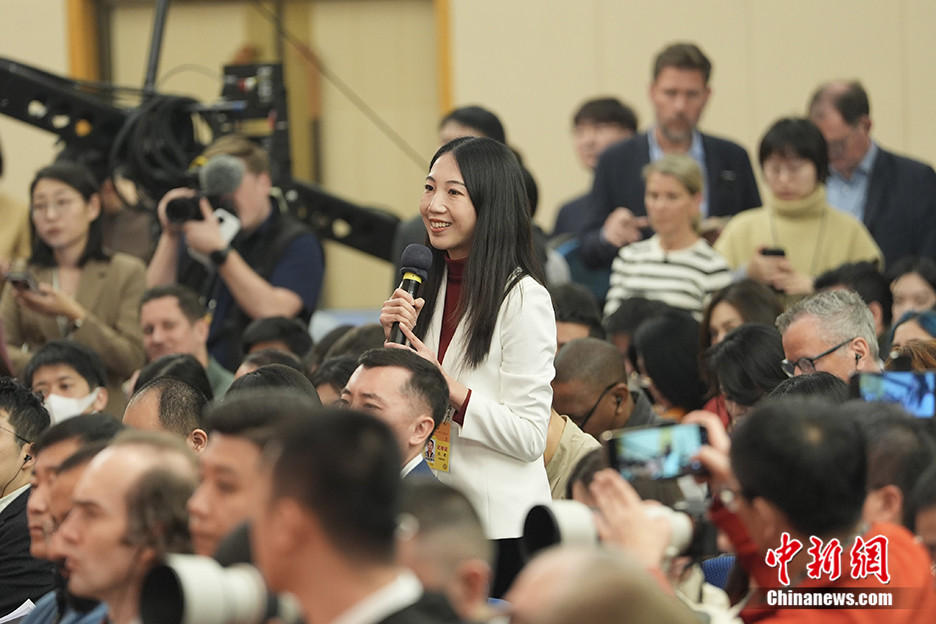 3月7日,十四屆全國人大二次會議舉行外交主題記者會,圖為中新社記者提問。中新社記者 崔楠 攝