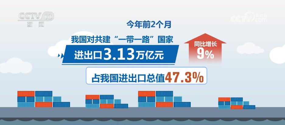 海關(guān)統(tǒng)計(jì)數(shù)據(jù)顯示,今年前2個(gè)月,我國(guó)對(duì)共建“一帶一路”國(guó)家進(jìn)出口3.13萬億元,同比增長(zhǎng)9%,占我國(guó)進(jìn)出口總值的47.3%。其中,對(duì)東盟進(jìn)出口9932.4億元,增長(zhǎng)8.1%;對(duì)中亞五國(guó)進(jìn)出口950.9億元,增長(zhǎng)26%。同期,對(duì)RCEP其他成員國(guó)進(jìn)出口1.94萬億元,增長(zhǎng)3.5%;對(duì)拉美進(jìn)出口5874.8億元,增長(zhǎng)17.3%;對(duì)非洲進(jìn)出口3389.4億元,增長(zhǎng)17.3%。