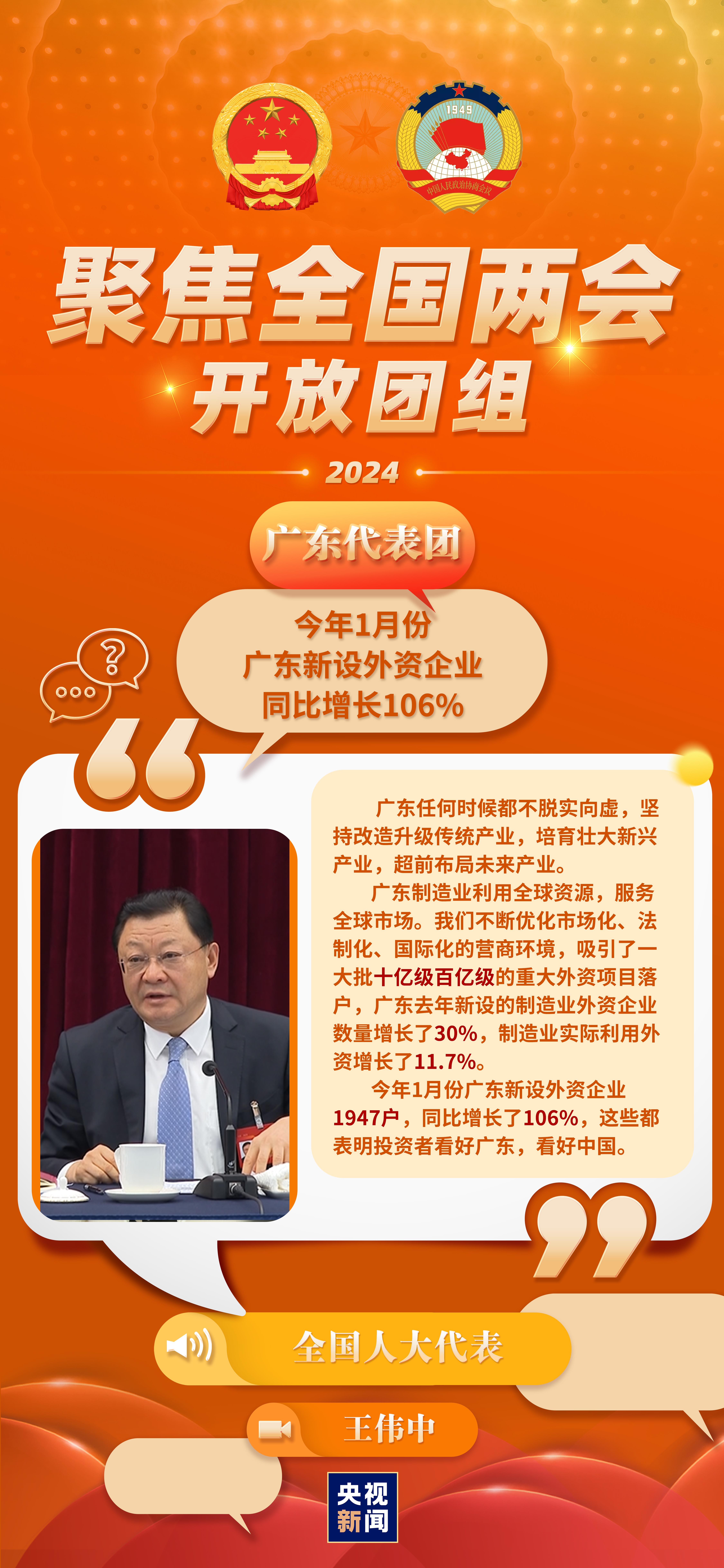 今天(3月7日)上午,廣東代表團舉行了開放團組活動。代表們就制造業(yè)高質(zhì)量發(fā)展、區(qū)域協(xié)調(diào)發(fā)展與鄉(xiāng)村振興、高水平對外開放、海洋經(jīng)濟等熱點話題進行了發(fā)言。