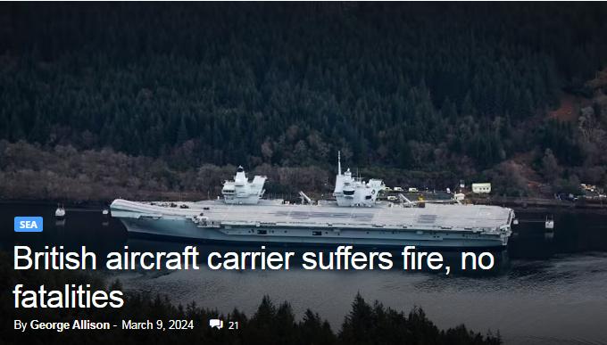 中新網(wǎng)3月10日電 據(jù)英國“UKDefenceJournal”網(wǎng)站、英國《獨(dú)立報(bào)》等多家英國媒體當(dāng)?shù)貢r(shí)間9日?qǐng)?bào)道,??吭谔K格蘭格倫馬蘭的英國航空母艦“伊麗莎白女王”號(hào)發(fā)生火災(zāi)。目前尚無人員傷亡報(bào)告。