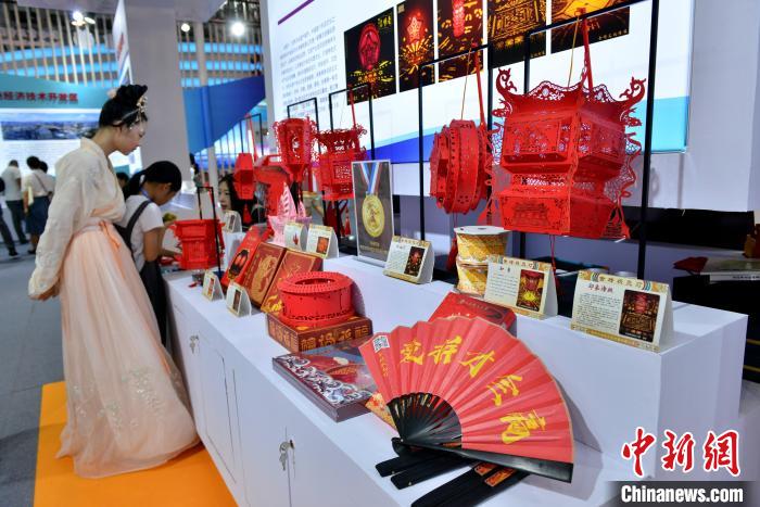 2023年8月5日,福建廈門(mén),泉州傳統(tǒng)花燈文創(chuàng)作品吸引參觀者。中新社記者 呂明 攝