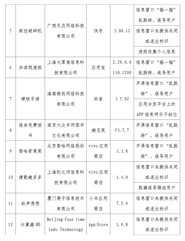 工信部通報(bào)62款存在侵害用戶權(quán)益行為的APP(SDK)