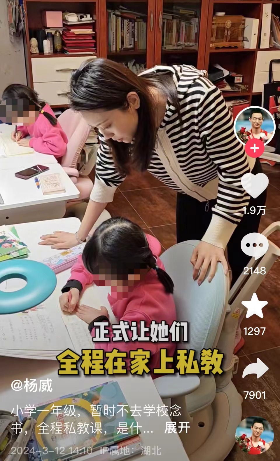 近日,體操奧運冠軍楊威在社交平臺發(fā)布視頻稱,由于去年兩個女兒連生好幾場病后,他跟妻子楊云做了個大膽嘗試,讓上一年級的兩個女兒暫時不去學(xué)校念書,全程在家上私教。